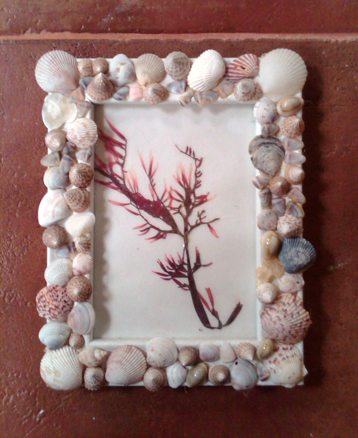 If you are looking for something to do with all those seashells you’ve collected, why not use them to decorate picture frames? Use some old frames or buy them at yard sales or the dollar store. All you need are seashells, glue and some creativity. Fill the frames with photos from your vacation at the beach. These frames were made by my daughters and hold SeaweedArt they created. Note: A hot glue gun works best.